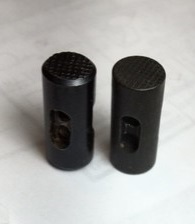 About the Type 1 safeties, I have 2 of them. One has a definite bevel or chamfer around the ends and is almost black (dulite?). The other has no such thing and appears parked. I can't find any clarifying data. Is one of these fake?