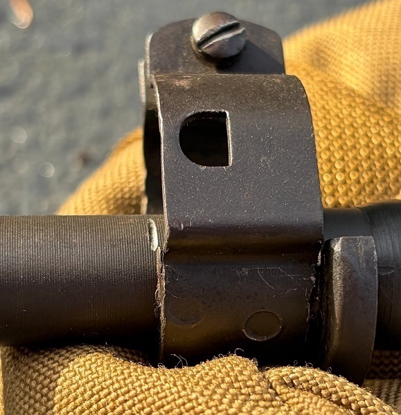 Bubba strikes again. Here is a hand-stamped 6.8 million Inland that has an incorrect “type II barrel band”. It was a mystery since there is no sign that the front R stamped sight has ever been removed. Upon inspection you can see that Bubba sawed off the bayonet lug while the Type III band was still on the barrel – there are saw marks on the barrel where he sawed through the band. It’s a nice carbine otherwise.