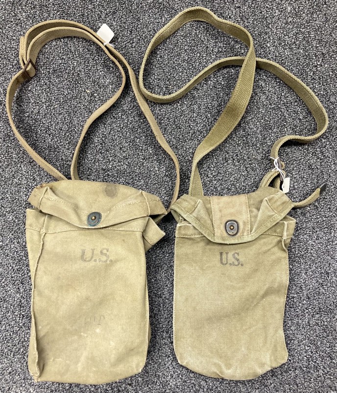 An earlier, similar pouch was used with the Thompson, two examples of which are pictured below from my collection. That's not to say that the Greasegun was not used with Thompson magazines, but the pouch came out after the M3 officially replaced the Thompson, though the Thompson served long after.
