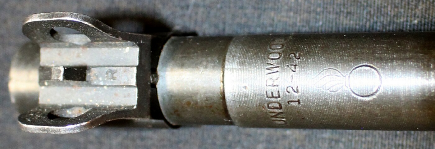 This is a Universal Firearms hybrid carbine manufactured in 1967 or 1968. It features a Teflon coating to protect the firearm from the elements. For several reasons the bolts and sights were not normally Teflon coated. Contrary to marketing efforts at the time it did not make the gun an underwater gun. Resulting in many rusting from a lack of care and maintenance. This example is one of the few surviving exceptions. This particular carbine is the carbine shown in War Baby! volume III, page 1564, figure 1857. It will include its original magazine. Price: SOLD ![]() ![]() ![]() ![]() ![]() Universal Firearms History |