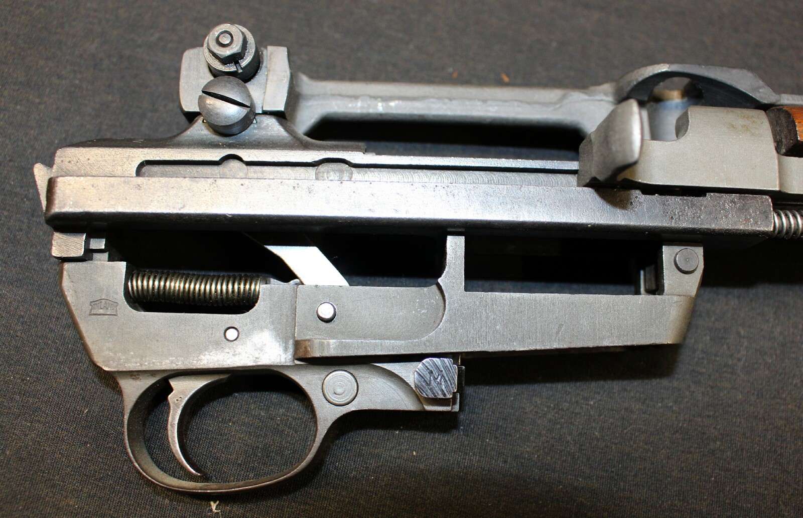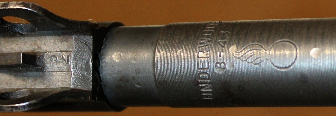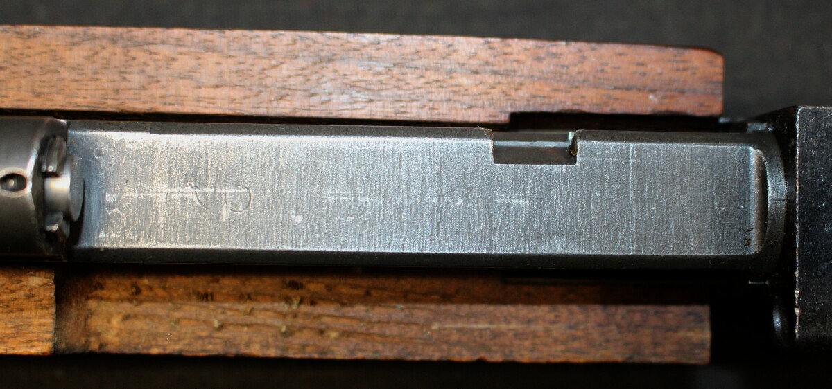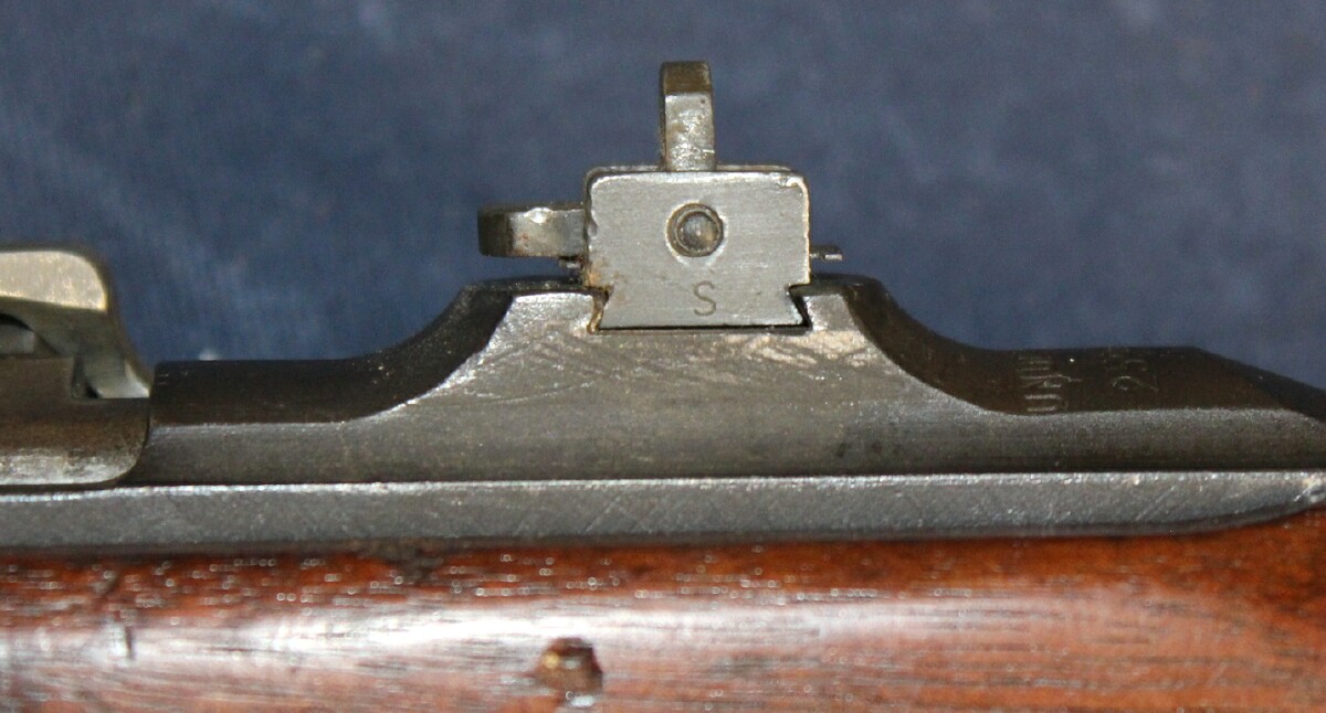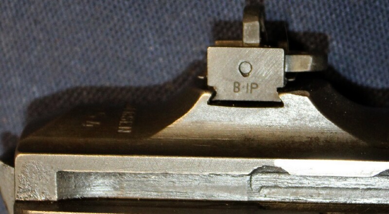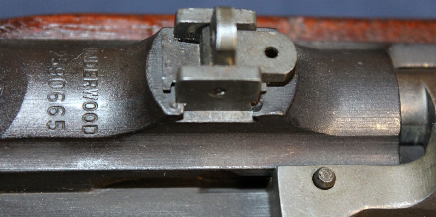 Partially restored - Underwood 3-43 barrel, IPN milled front sight (7 on left ear), type I bbl band, UP swivel, BR-B highwood type II stock with RIA EB rebuilt mark and P on front of hand grip, IP-W recoil plate, IP=PM buttplate, IR-RP handguard, IP flat bolt, IP-W extractor, IP firing pin, IP type III slide, reproduction B-IP rear flip sight, IP type II trigger housing (locater hole for hammer spring not counter-bored), IP dogleg hammer, IP trigger, IP-SW sear, IP-W type II push safety, IP-W type IIA mag catch. Includes sling, oiler, magazine. Estimated Value: SOLD ![]() ![]() ![]() ![]() ![]() ![]() ![]() ![]() ![]() ![]() ![]() ![]() ![]() ![]() ![]() ![]() ![]() ![]() ![]() ![]() ![]() |