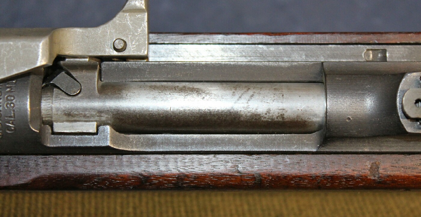 ------------------------------------------------------------------------------------------------------------------------------------------------------------------------------------------------------------------------------------------------------ #121 National Postal Meter Model M1 Carbine s/n 4308995 Late receiver with nice finish, slight brown staining on one side. No stake marks. Tight Marlin barrel with good ME & HS. There is a small cut onthe side of the barrel fingernail depth. T1 band. Slide N5 (N15) with wide arm. Bolt N14, N-N t3 firing pin, N 9 early TH, only late hammer mark. NH blued hammer, LN sear, SN trigger, MN catch, push safety. Add your own stock for a very nice collectable carbine Estimated Value: SOLD ![]() ![]() ![]() ![]() ![]() ![]() ![]() ![]() ![]() ![]() ![]() |